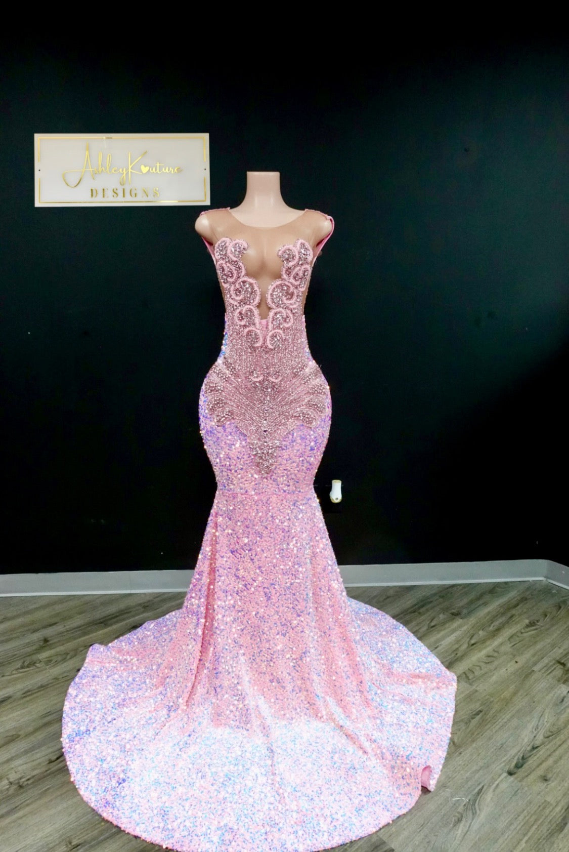 $250.00 deposit required to hold. This beautiful custom is made of sequin stretch material.