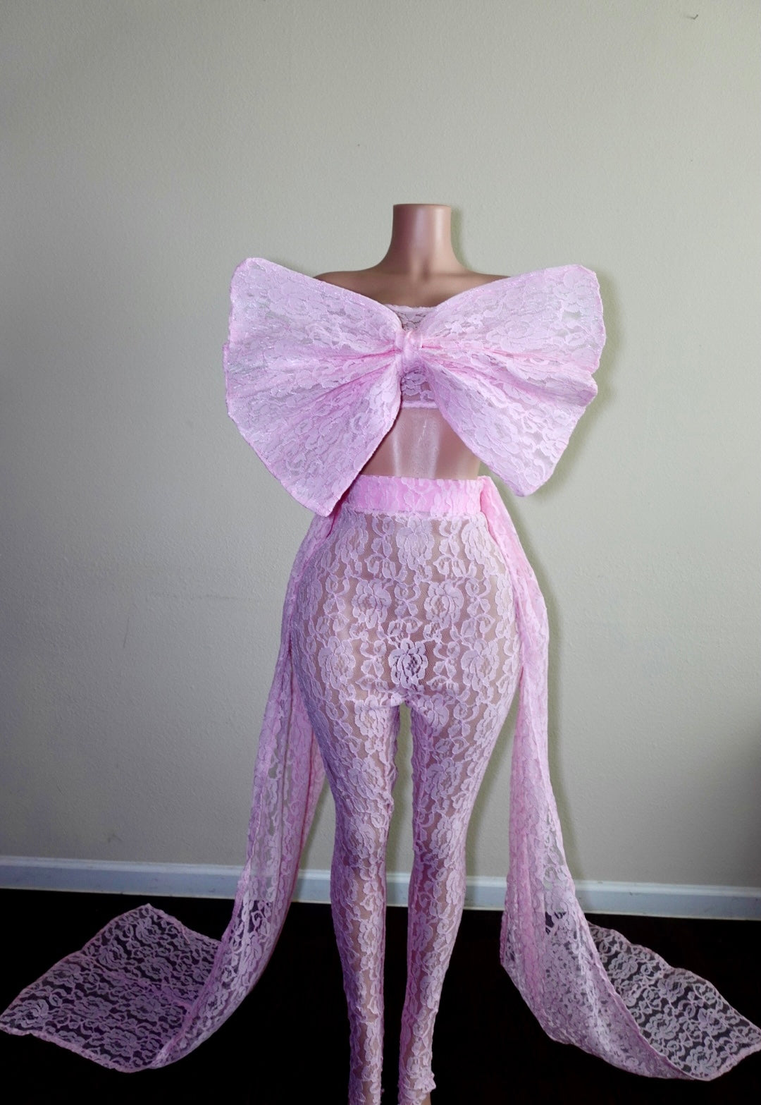 This two piece was made with a pink lace fabric